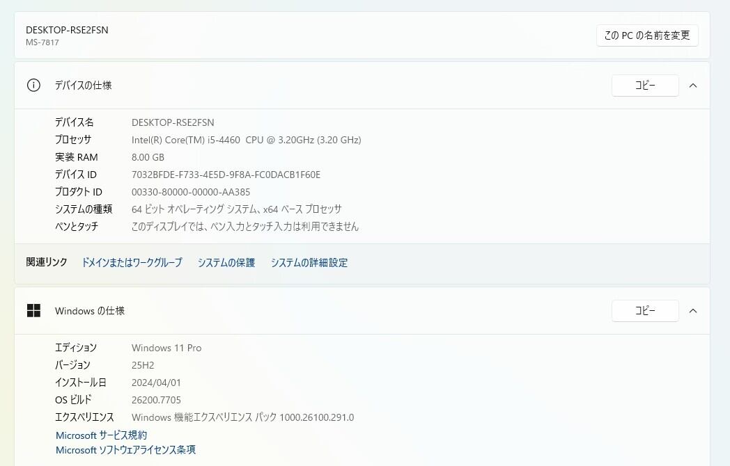 ・OS:Windows11 Pro/25H2(ライセンス認証・Windows update済)