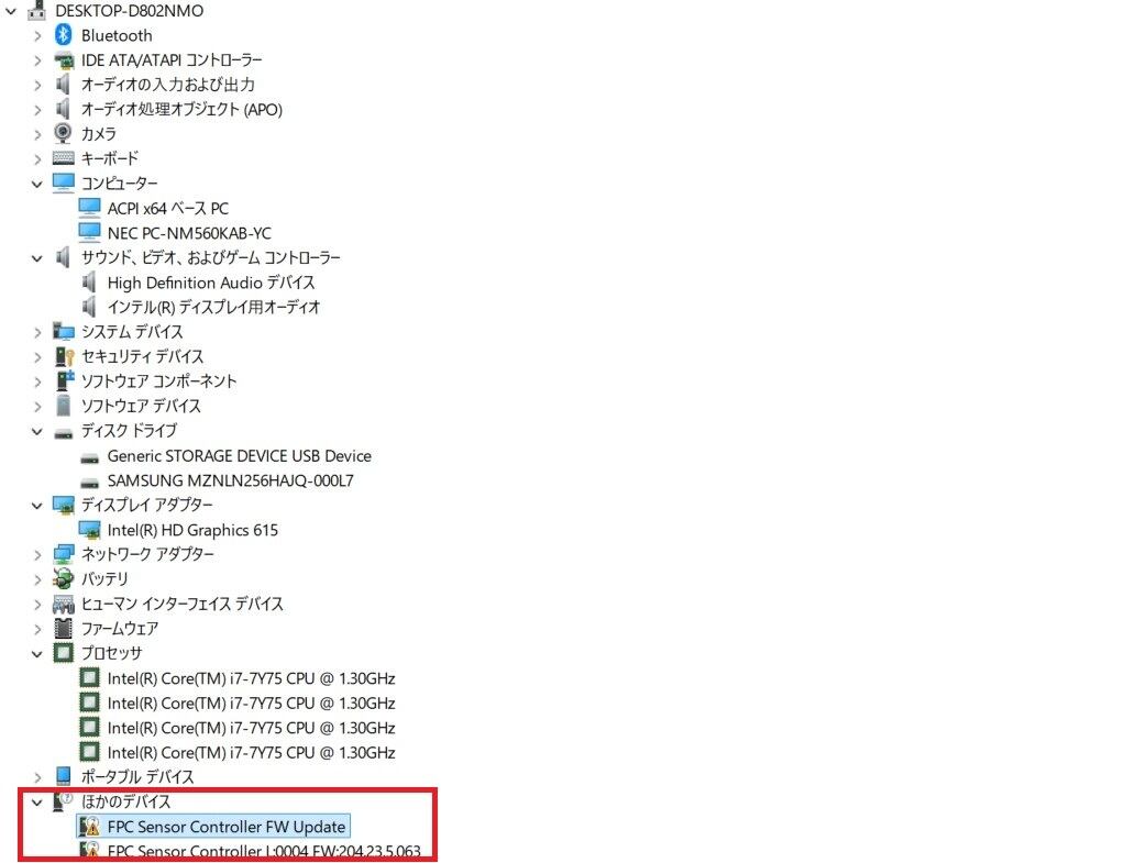 デバイスマネージャー内に2件、異常あり(動作への影響なし)