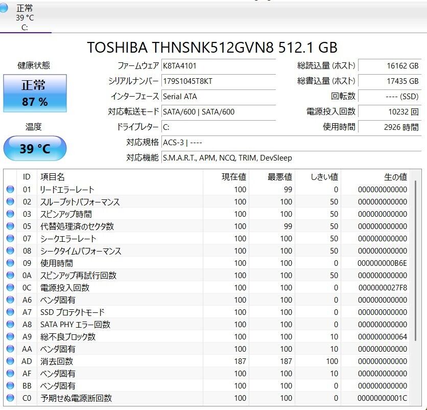 ・ストレージ:SSD 512GB