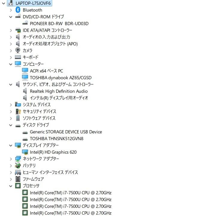 ・CPU:Intel Core i7-7500U 2.70GHz(2.90GHz)
