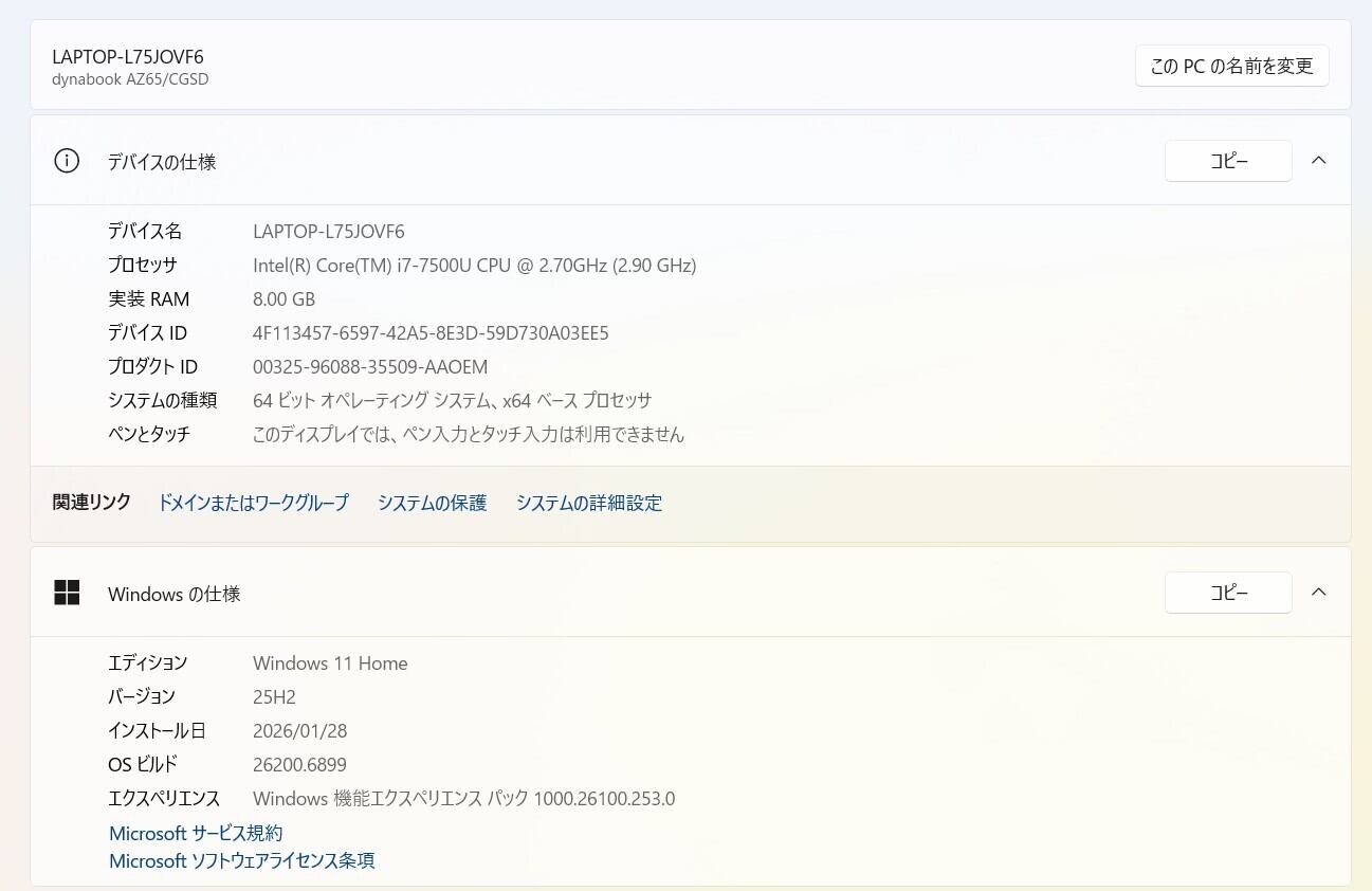 ・OS:Windows11 Home/25H2(ライセンス認証・Windows update済)
