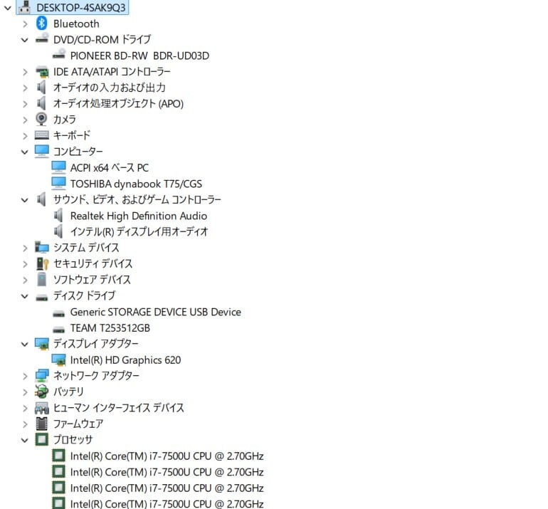 ・CPU:Intel Core i7-7500U 2.70GHz(2.90GHz)
