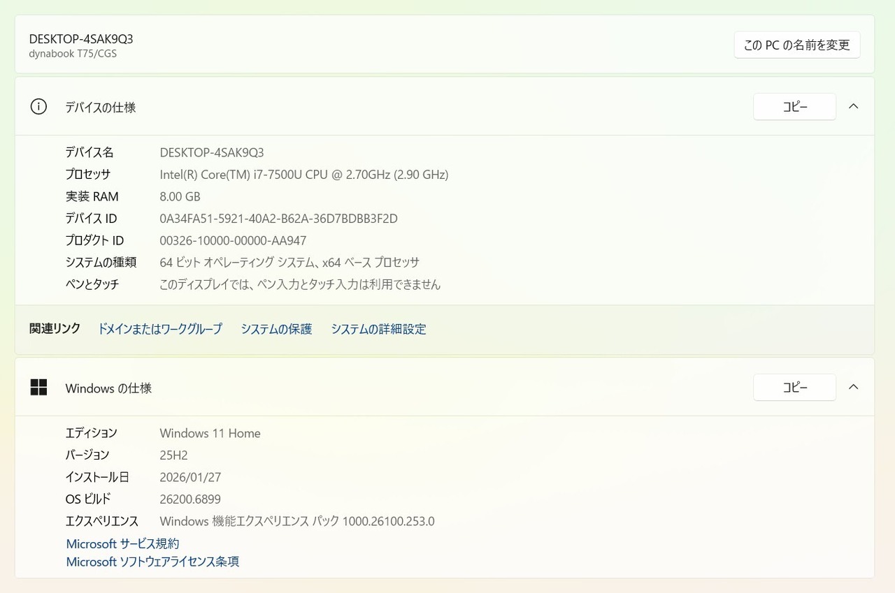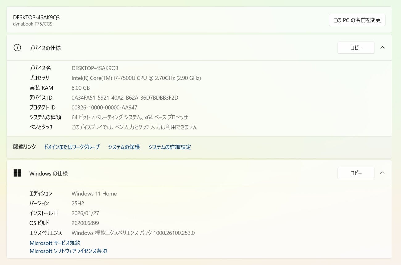 ・OS:Windows11 Home/25H2(ライセンス認証・Windows update済)