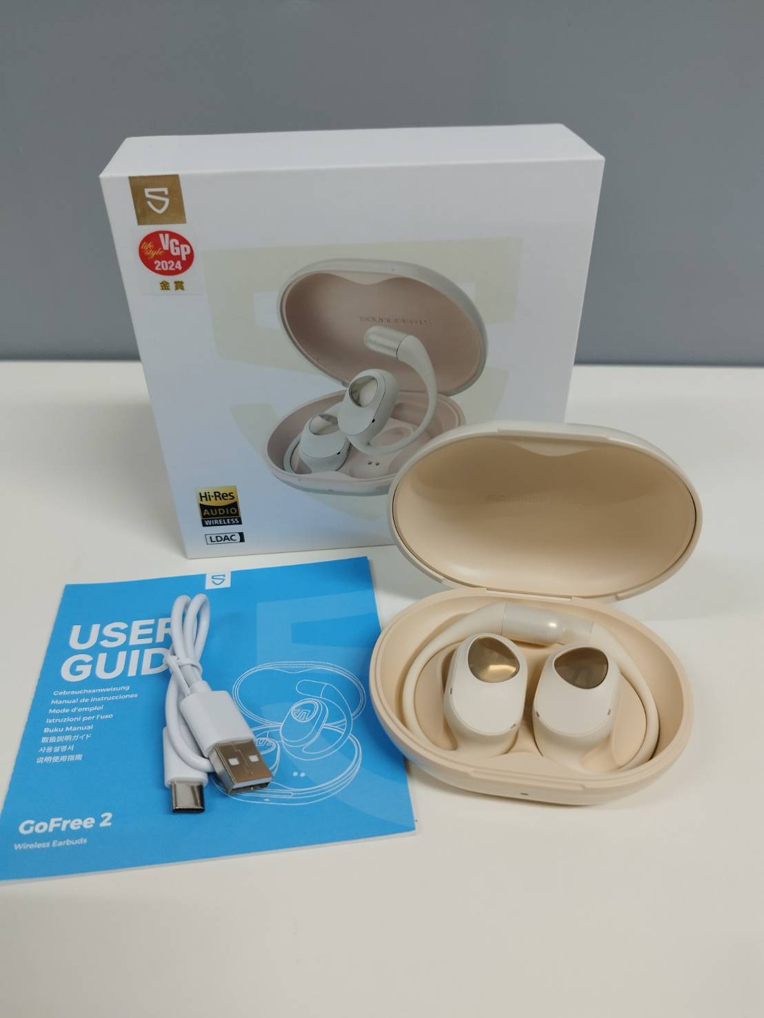 イヤホン、充電ケース、Type-C To Type-Aケーブル、ユーザーガイド(画像1枚目に写っているもの)