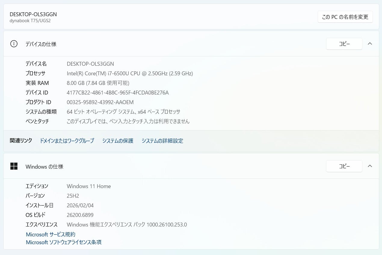 ・OS:Windows11 Home/25H2(ライセンス認証・Windows update済)