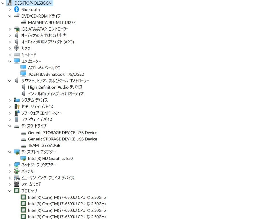 ・CPU:Intel Core i7-6500U 2.50GHz(2.59GHz)