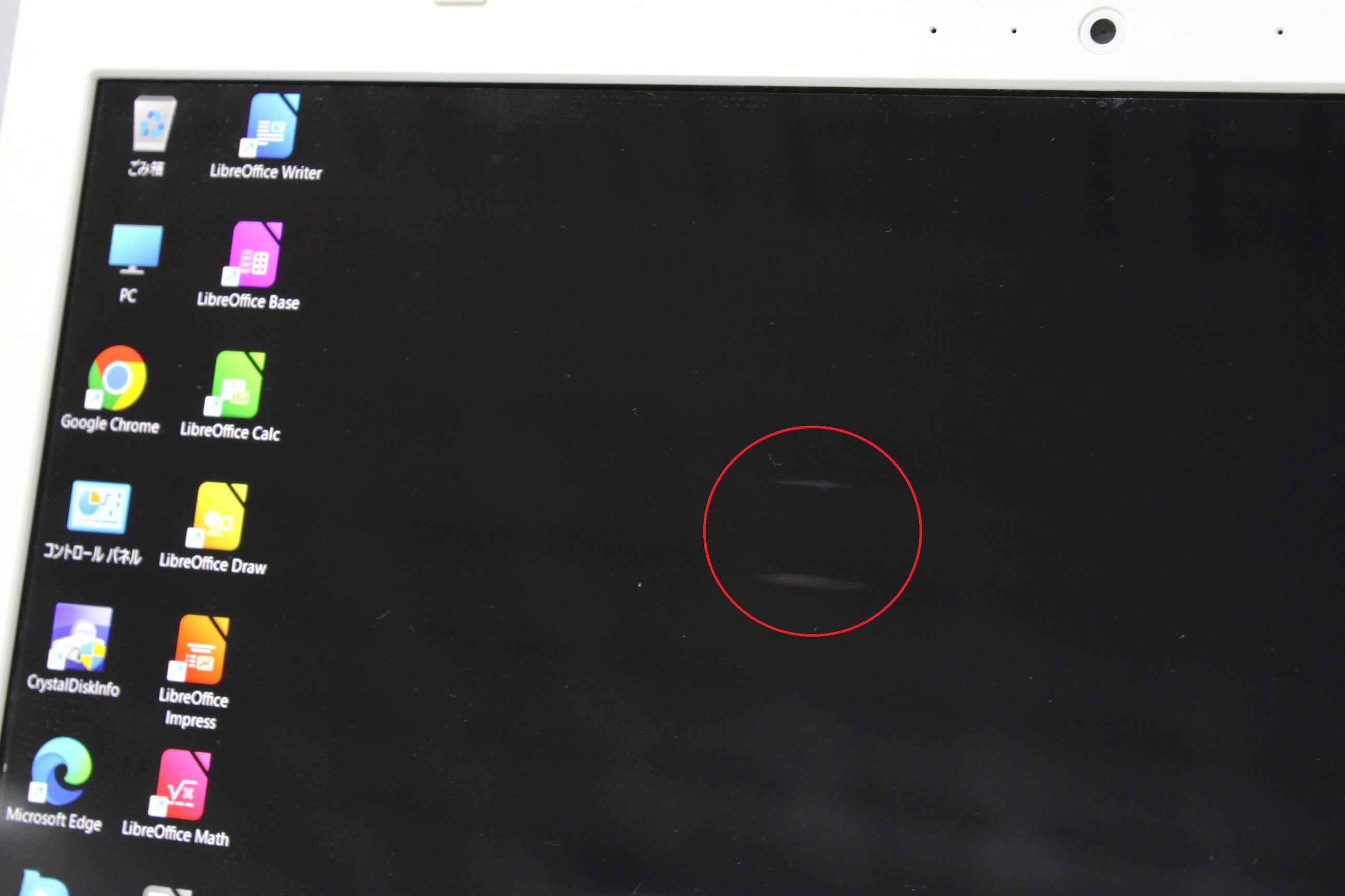 画面中央付近に、輝度ムラのようなものがあります(黒背景時のみ)