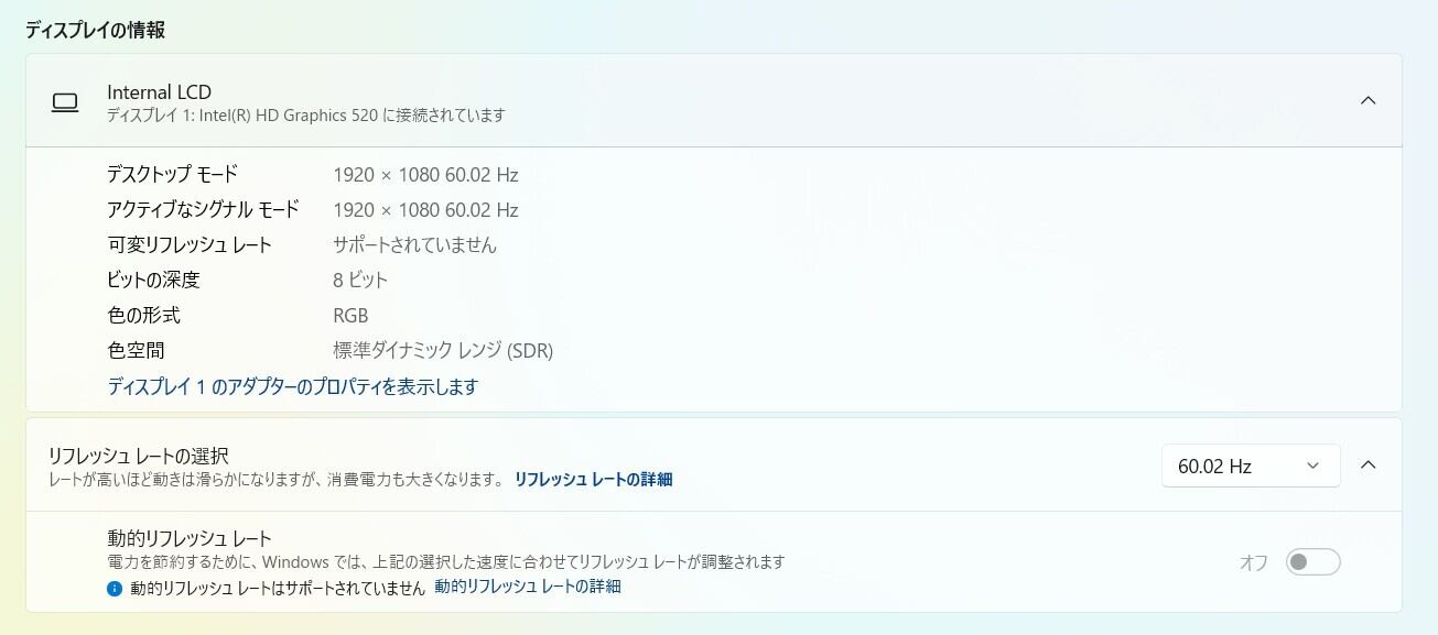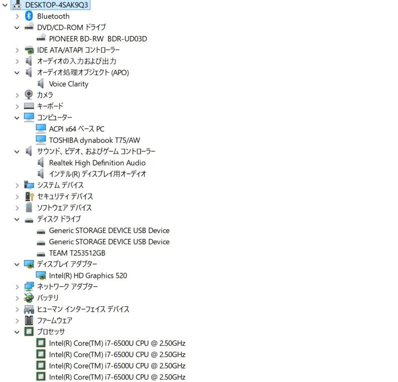 ・CPU:Intel Core i7-6500U 2.50GHz(2.60GHz)
