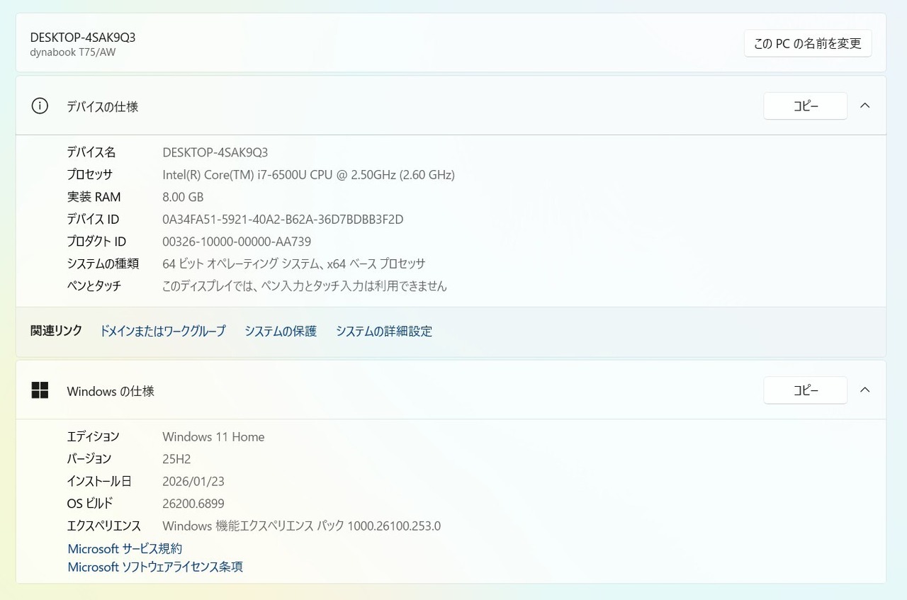 ・OS:Windows11 Home/25H2(ライセンス認証・Windows update済)