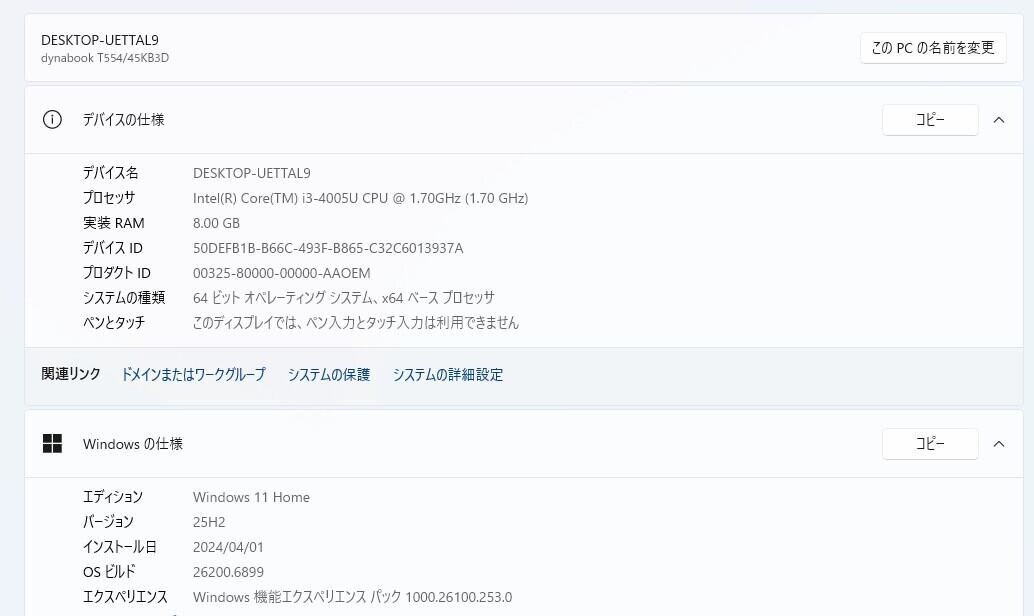 ・OS:Windows11 Home/25H2(ライセンス認証・Windows update済)