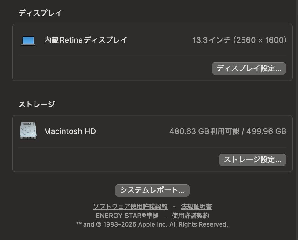 ・ディスプレイ:Retina 13.3インチディスプレイ(2,560 x 1,600)
