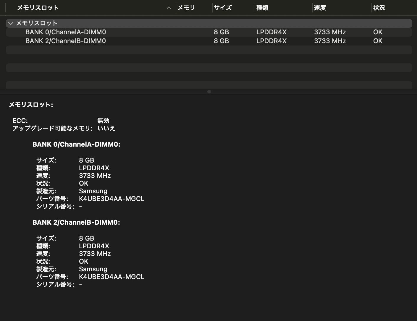 ・メモリ:16GB(8GB × 2)