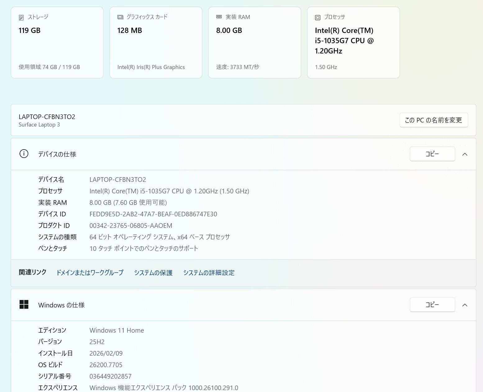 CPU:Intel Core i5-1035G7 1.20GHz(1.50GHz)