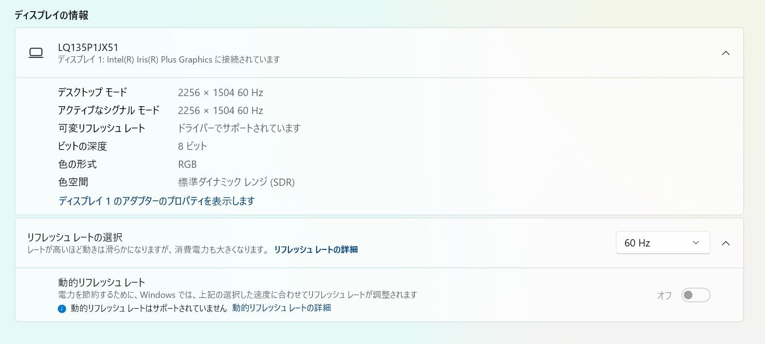 ディスプレイ:13.5インチ PixelSence (2,256 × 1,504)