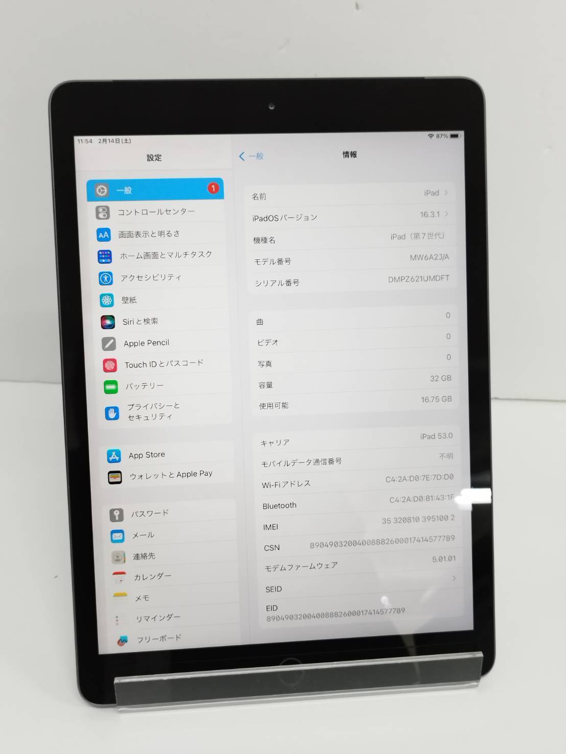 【SIMフリー】iPad 第7世代/A2198/32GB〈MW6A2J/A〉