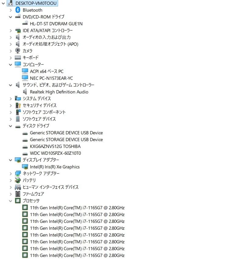 ・CPU:Intel Core i7-1165G7 2.80GHz(2.80GHz)