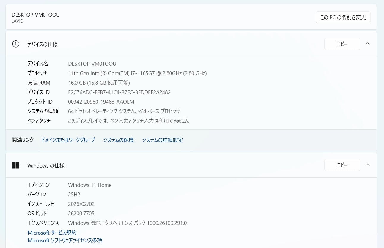 ・OS:Windows11 Home/25H2(ライセンス認証・Windows update済)