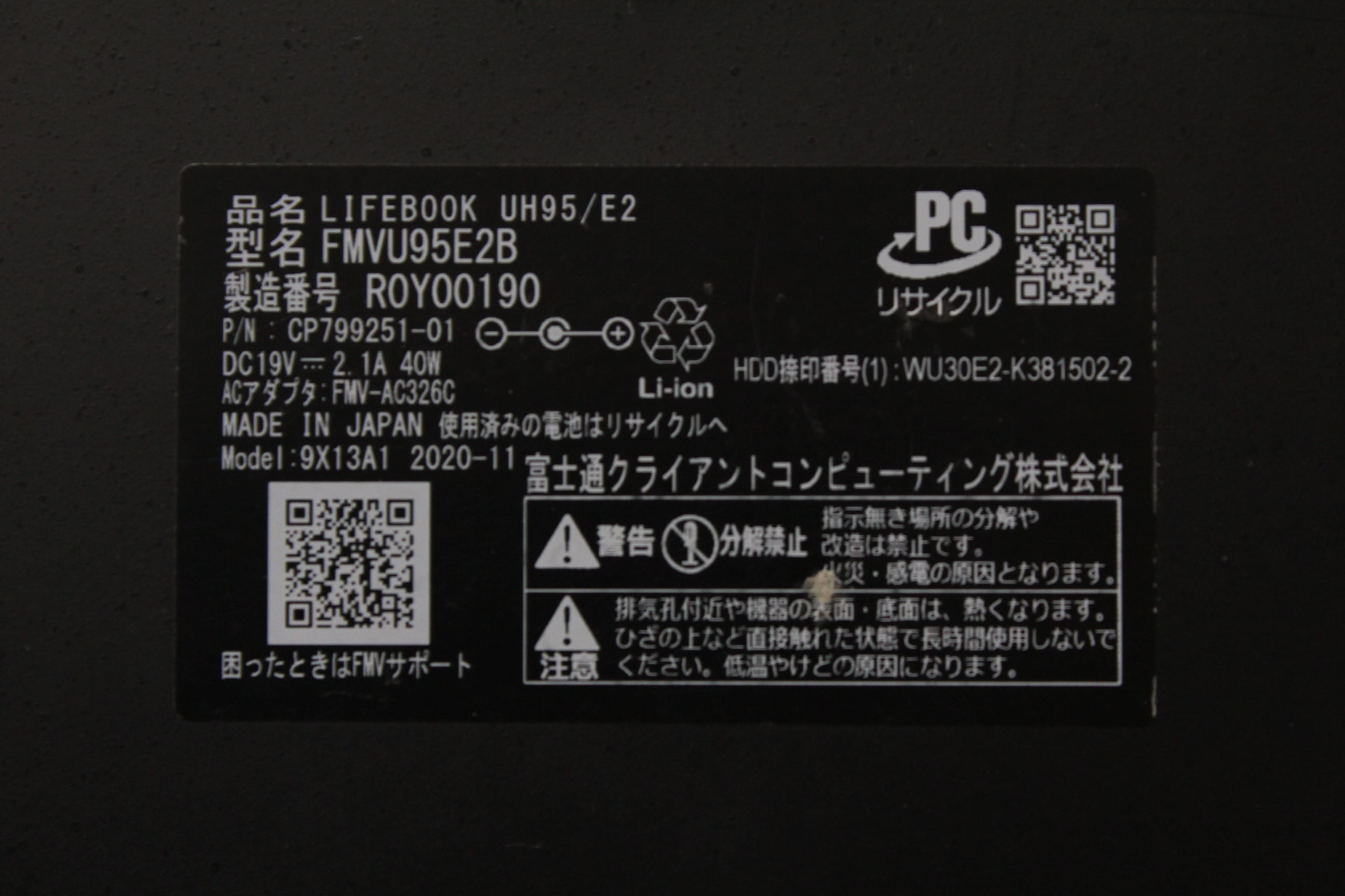 ・型番:FMVU95E2B