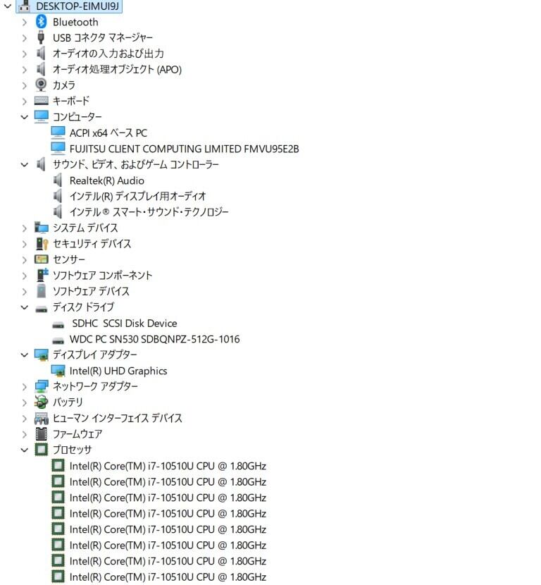 ・CPU:Intel Core i7-10510U 1.80GHz(2.30GHz)