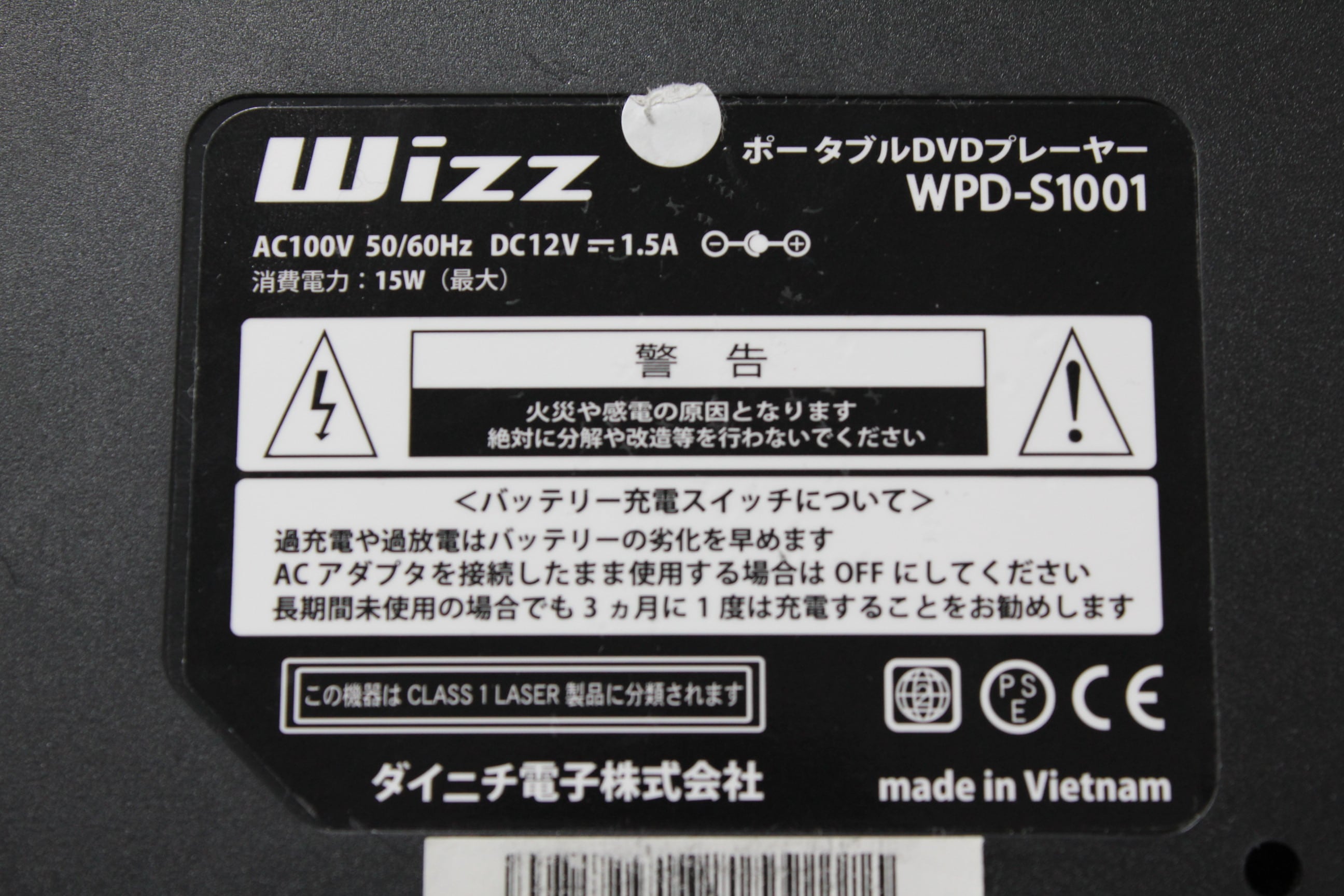 ダイニチ電子/Wizz WPD-S1001/DVDプレーヤー ④