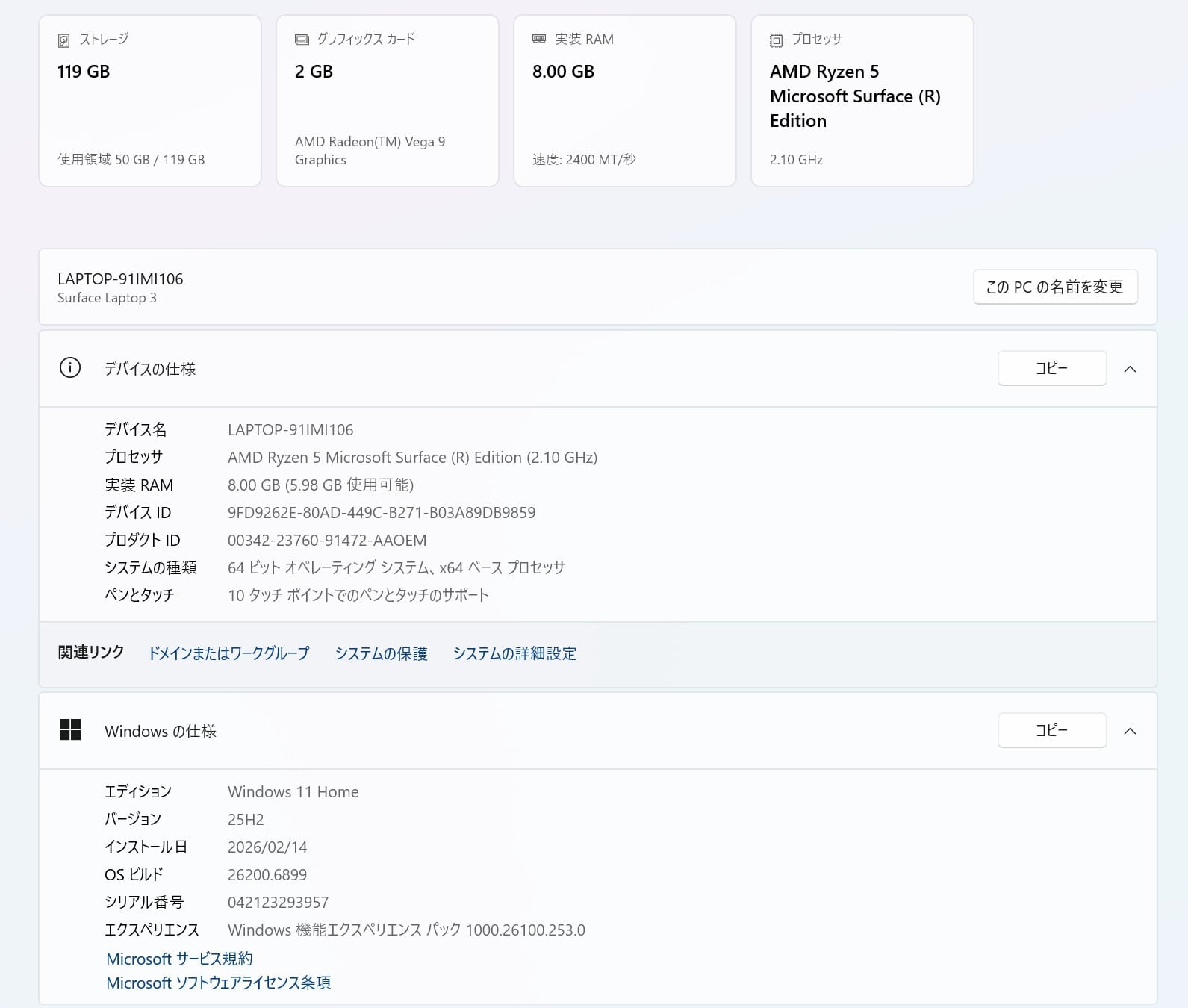 【現状品】Surface Laptop3/15インチ/Ryzen 5/128GB/メモリ8GB ④