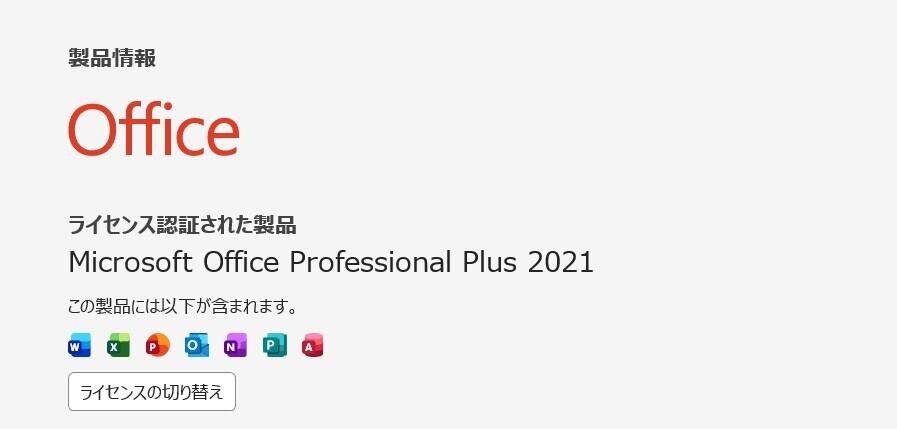 Office Professional Plus 2021 ライセンス認証済み(プロダクトキーなどは付属しません)