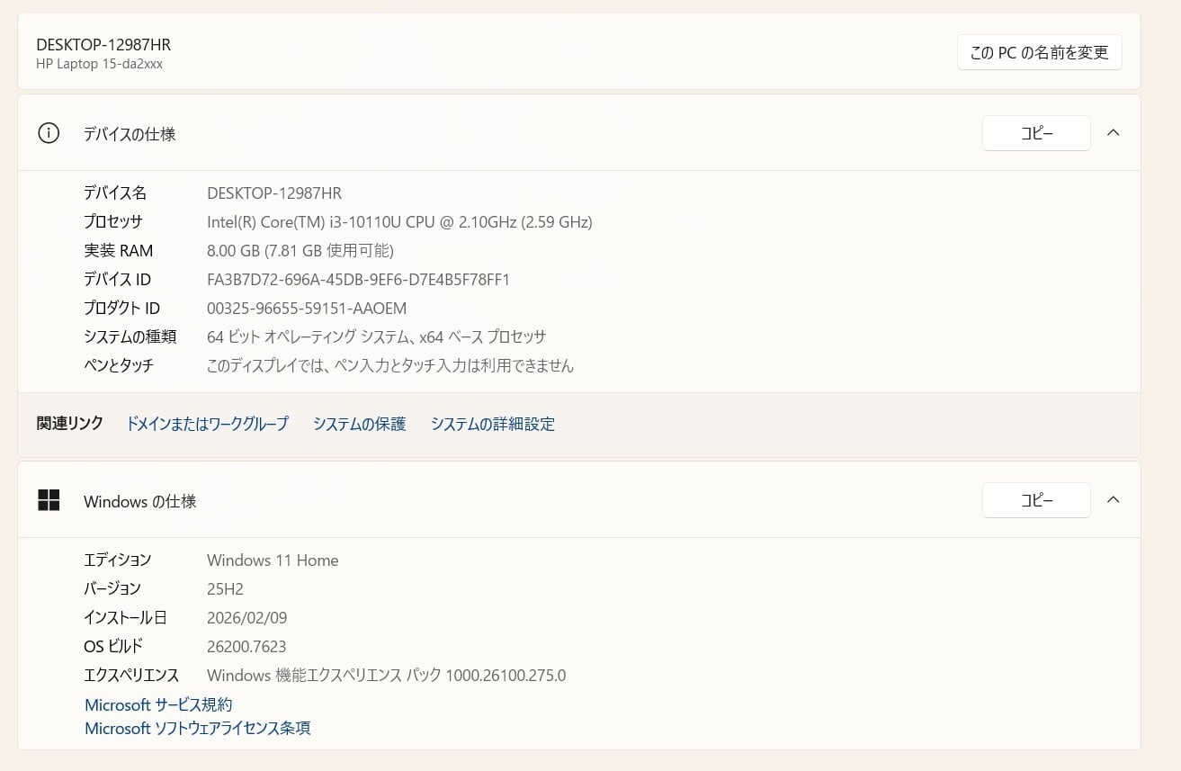 ・OS:Windows11 Home/25H2(ライセンス認証・Windows update済)