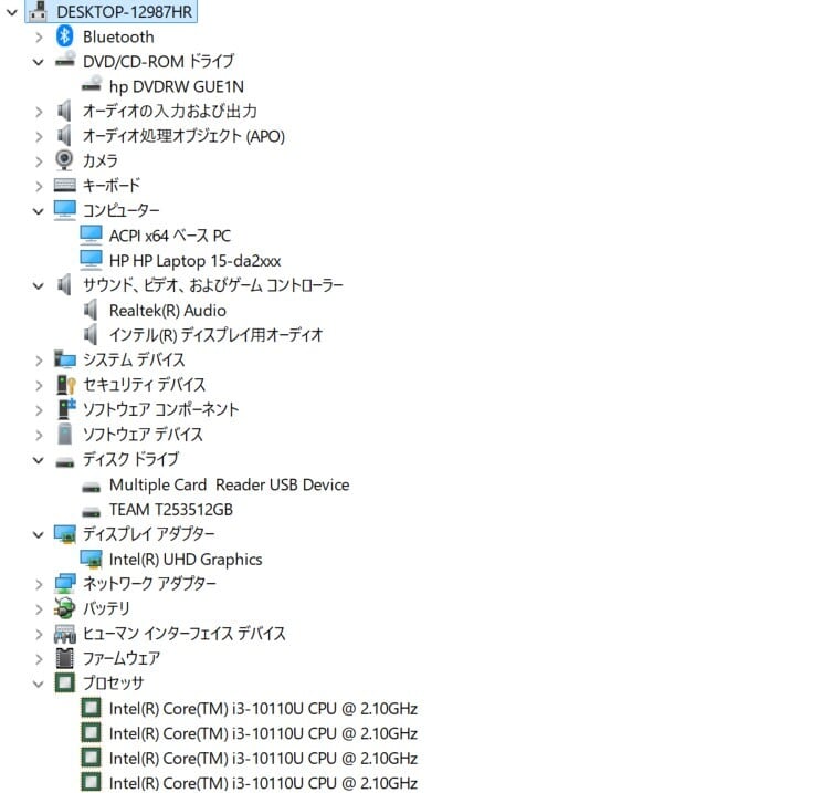 ・CPU:Intel Core i3-10110U 2.10GHz(2.59GHzHz)