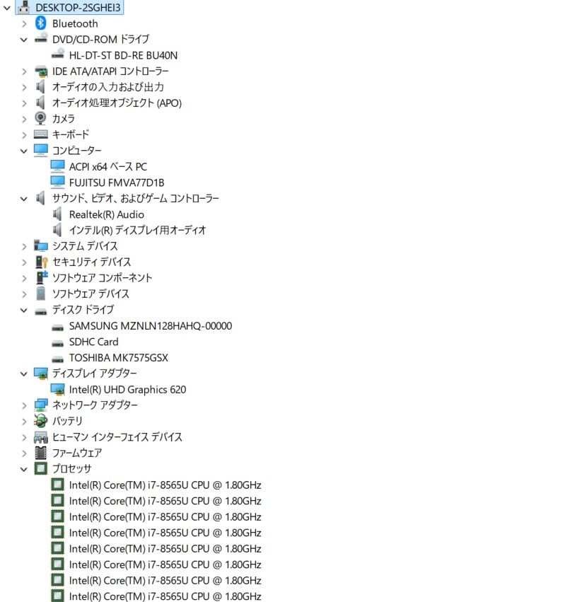 ・CPU:Intel Core i7-8565U 1.80GHz(1.99GHz)