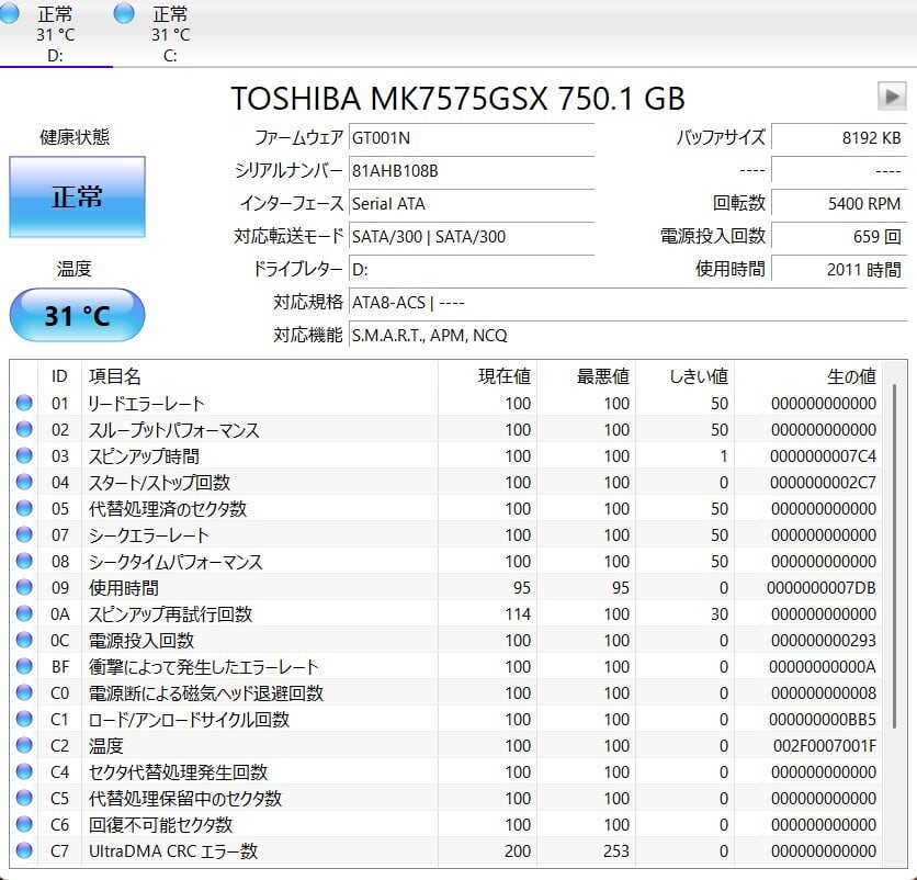・ストレージ:SSD 128GB + HDD 750GB