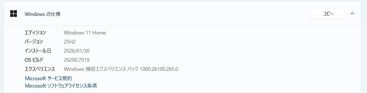 ・OS:Windows11 Home/25H2(ライセンス認証・Windows update済)