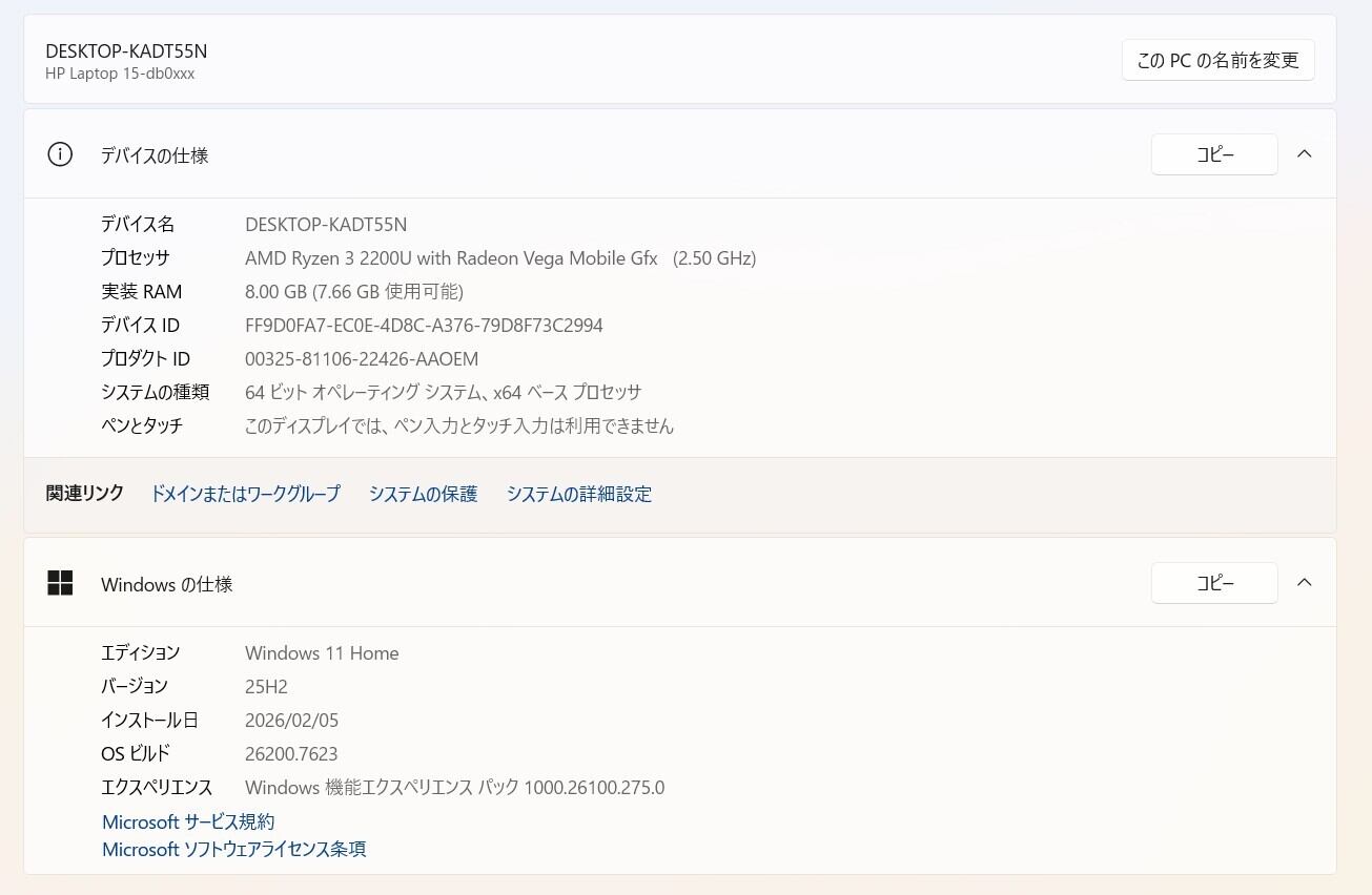 ・OS:Windows11 Home/25H2(ライセンス認証・Windows update済)