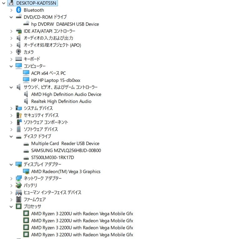 ・CPU:AMD Ryzen 3 2200U (2.50GHzHz)