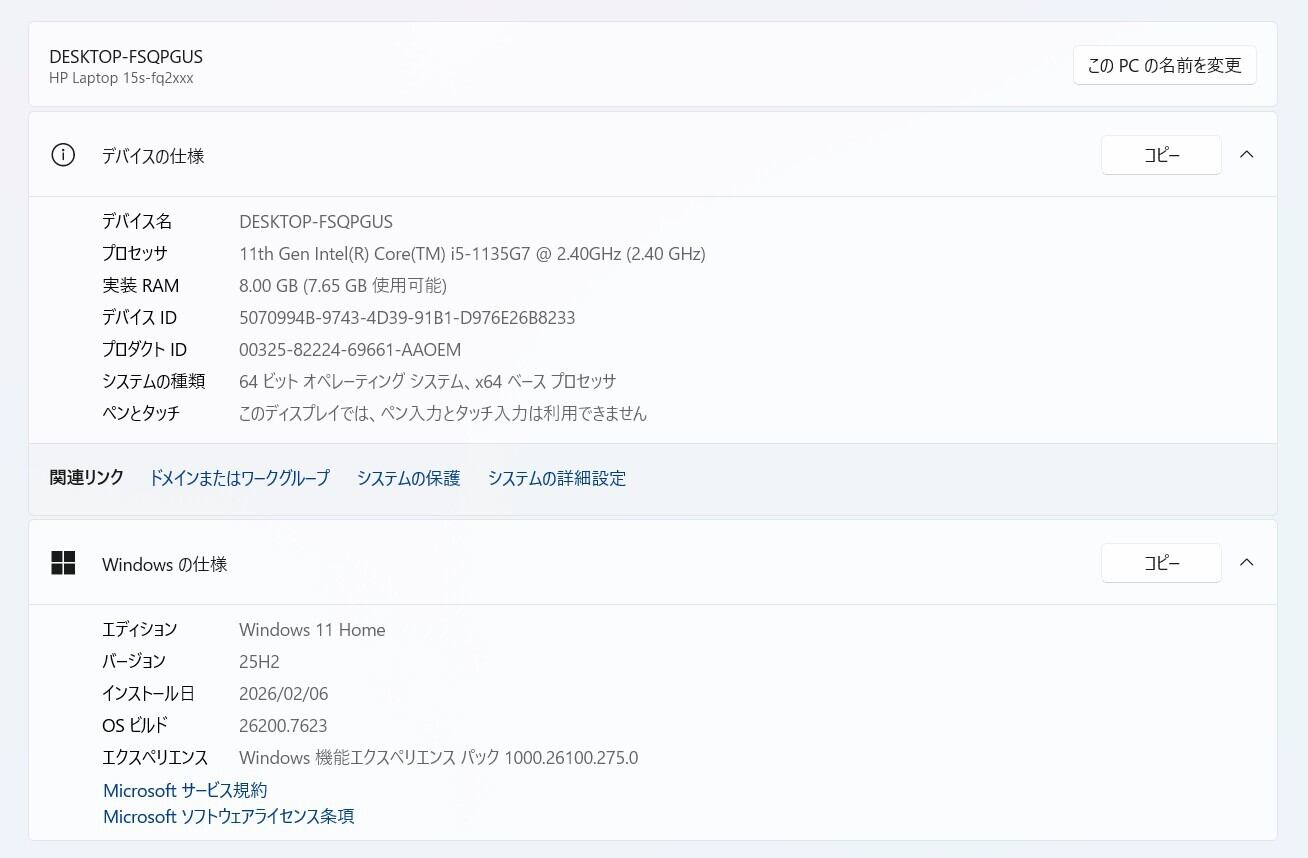 ・OS:Windows11 Home/25H2(ライセンス認証・Windows update済)