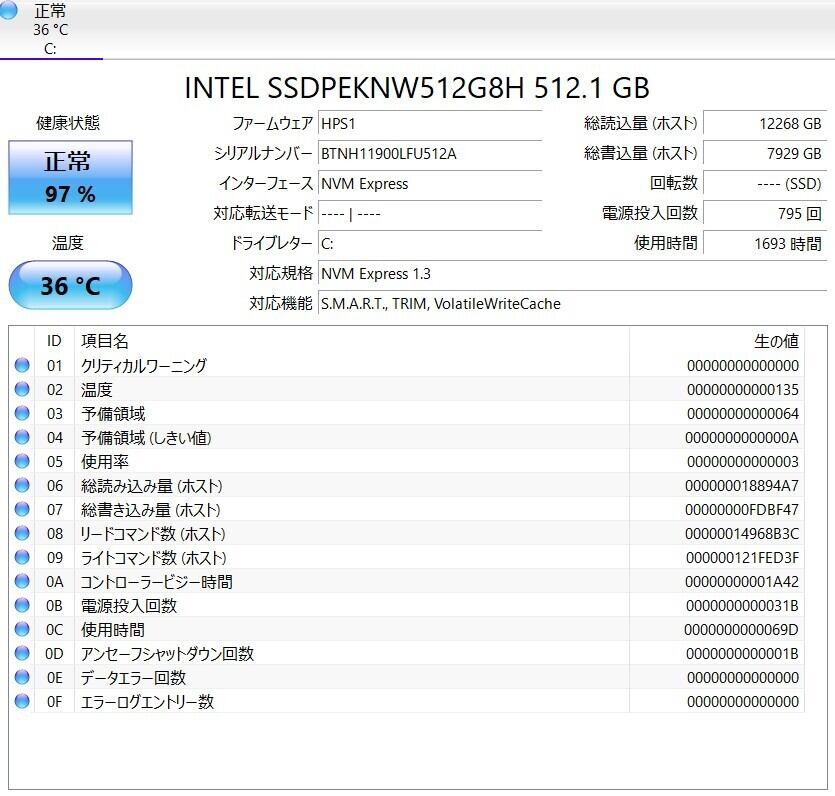 ・CPU:Intel Core i5-1135G7 2.40GHz(2.40GHzHz)
