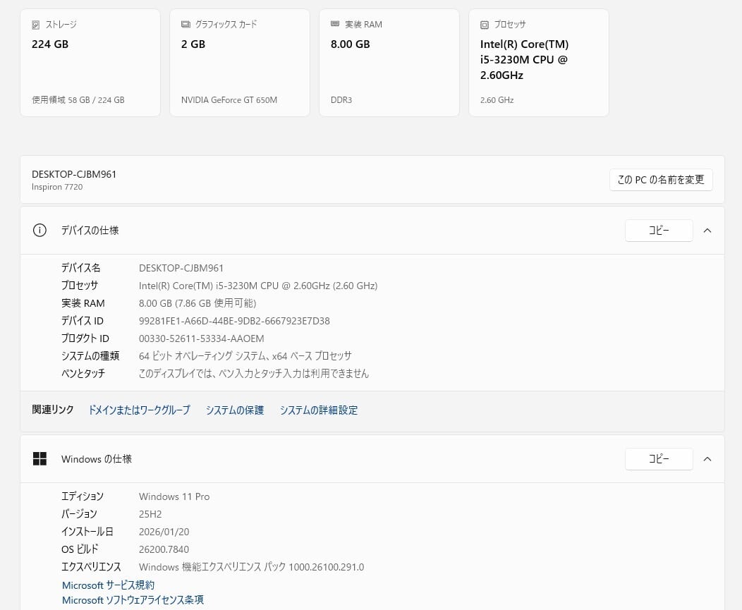 ・OS:Windows11 Pro/25H2(ライセンス認証・Windows update済)
