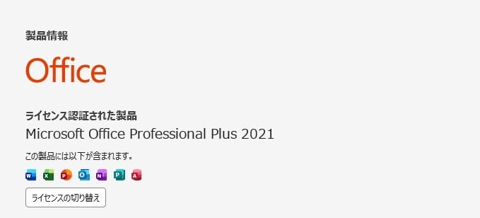 ・Office Professional Plus 2021 ライセンス認証済み(プロダクトキーなどは付属しません)