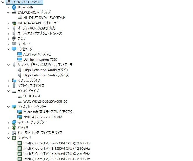 ・CPU:Intel Core i5-3230M 2.60GHz(2.60GHz)