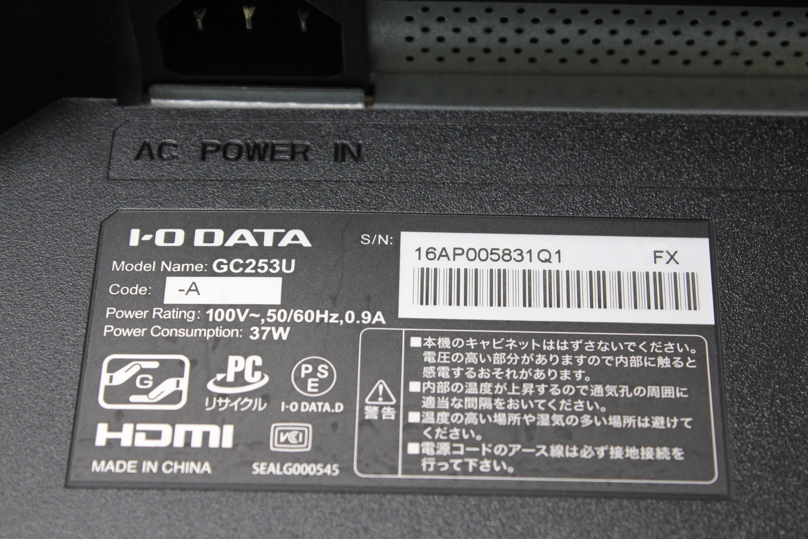 IODATA/GigaCrysta/LCD-GC253U/フルHD/24.5インチ/液晶モニター ⑥