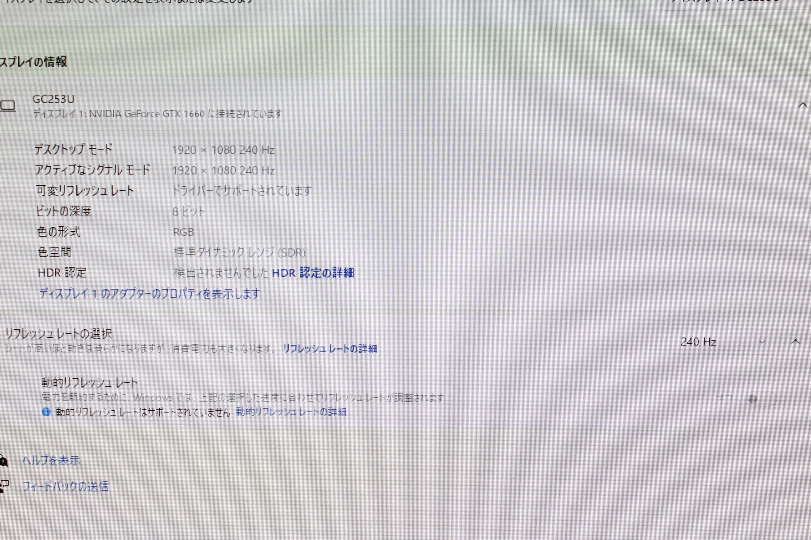 最大リフレッシュレート:240Hz