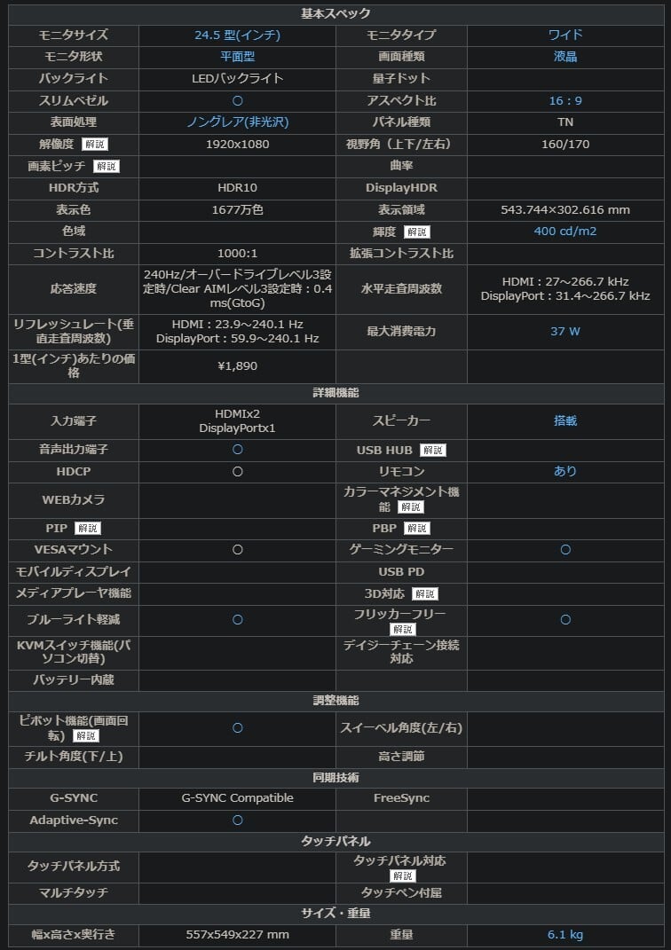 モニタサイズ:24.5型ワイド