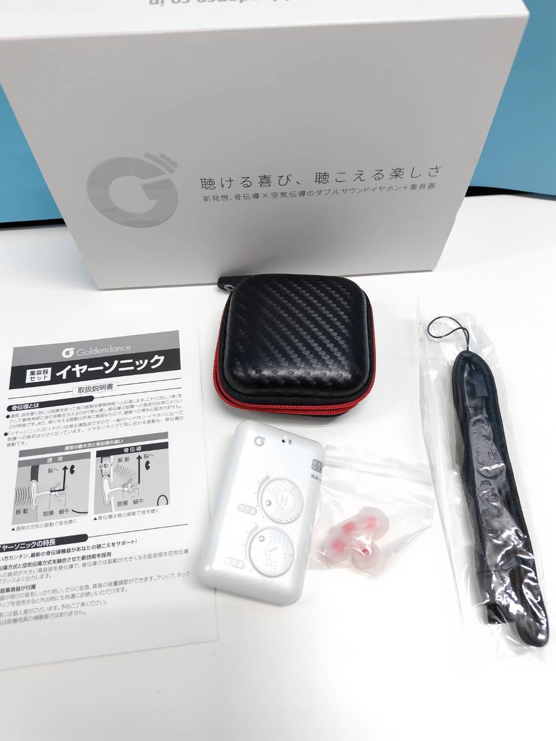 内容物:イヤホン、集音器、ストラップ、イヤーピース、