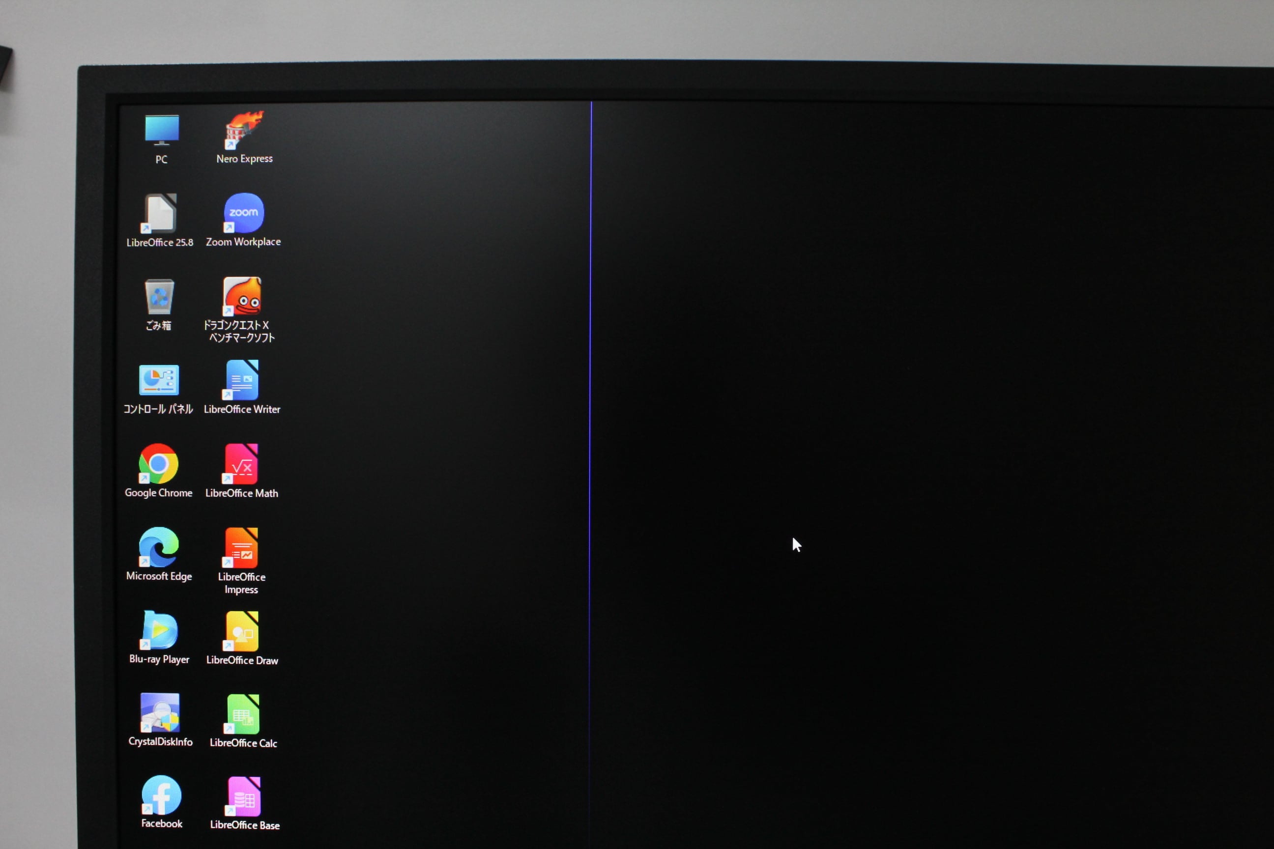 画面左側あたりに青色の縦線が発生することがあります(現状、チラつきはありません/ ご購入後の動作・商品状態の保証はいたしません。)