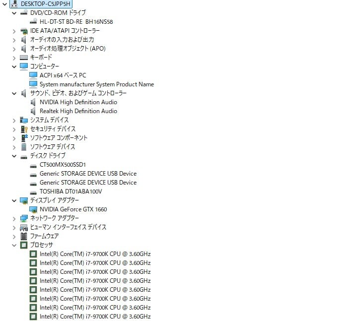 ・CPU:Intel Core i7-9700K 3.60GHz(3.60GHz)