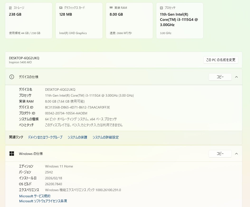・OS:Windows11 Home/25H2(ライセンス認証・Windows update済)