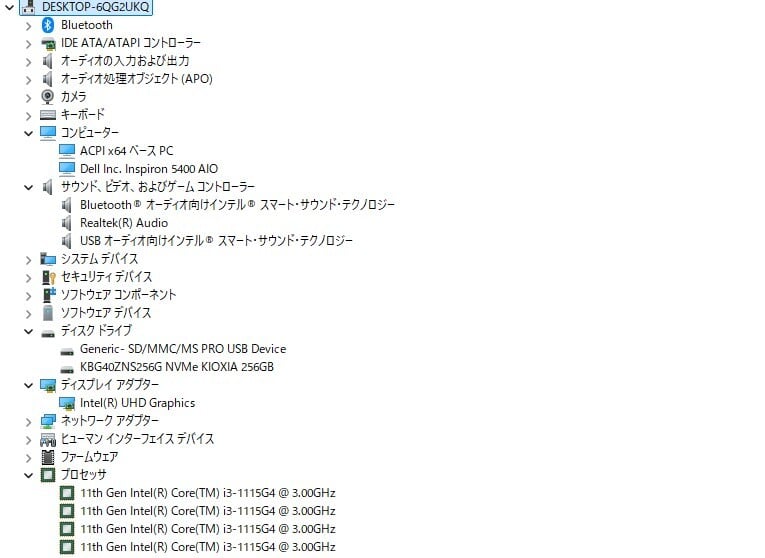 ・型番:Inspiron 5400