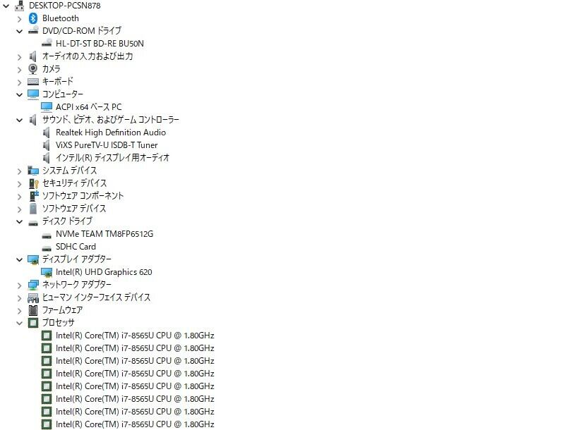 ・CPU:Intel Core i7-8565U 1.80GHz(1.99GHz)