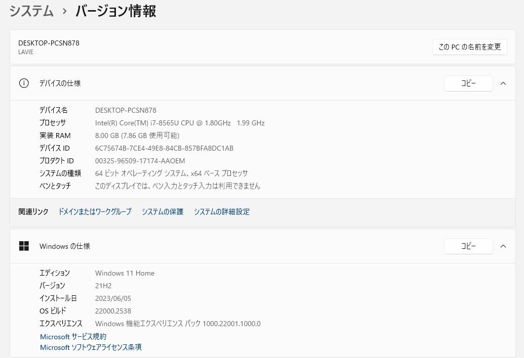 ・OS:Windows11 Home/21H2(ライセンス認証・Windows update済)