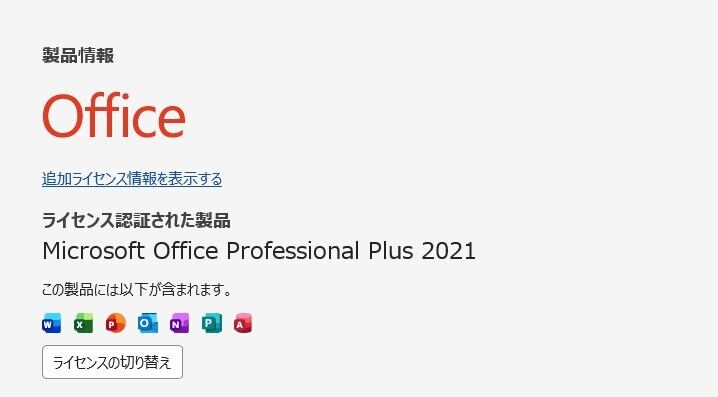 ・Office Professional Plus 2021 ライセンス認証済み(プロダクトキーなどは付属しません)