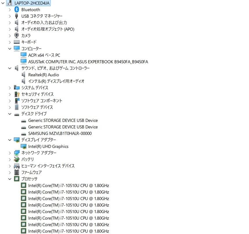 ・CPU:Intel Core i7-10510U 1.80GHz(2.30GHz)